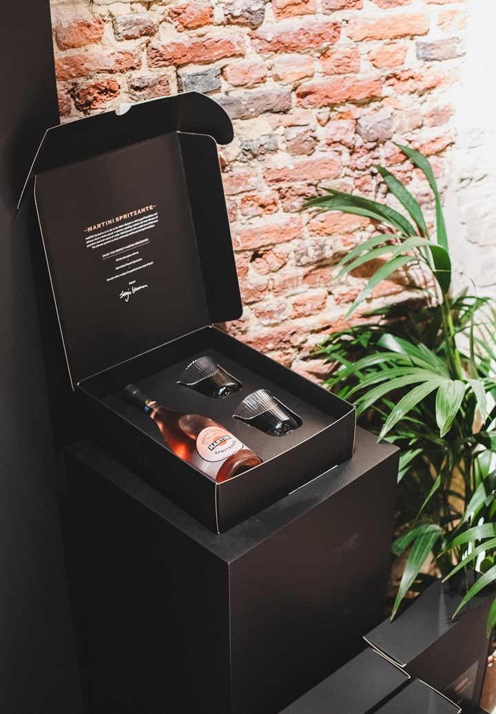 Michelin-starred chef Sergio Herman and Martini combined their culinary taste and craftsmanship in the creation of Martini Spritzante. Martini entrusted the production of this gift box to DUCAJU. The gift box is designed as a 4-point glued postpack box with a cardboard insert for the bottle of Martini Spritzante and 2 matching glasses.